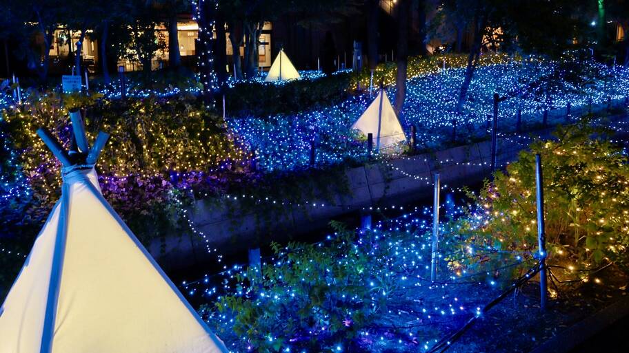 その足元には、子どもたちが描いた約5000個の紙灯篭が優しく灯ります。