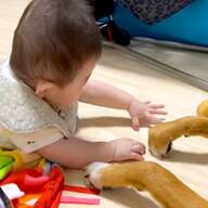 時には飼い主さんの取り合いになったりもするけれど、布団をかけてあげたりおやつをわけてあげたり、寝る直前もぴったり。娘さんがもっと大きくなっても、この仲良しな姿をいつまでも見られたらいいなと願っています。