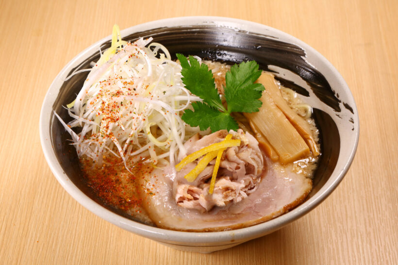 濃厚鶏白湯スープ+しゃきしゃき玉ねぎのこってり、鶏ガラスープと醤油のすっきりした旨みがしみるあっさり