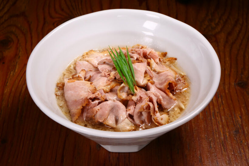 新食感、ふわっふわのとろけるチャーシューが山盛り。スープに肉のうまみが溶け出し、肉好きにはたまらない一杯