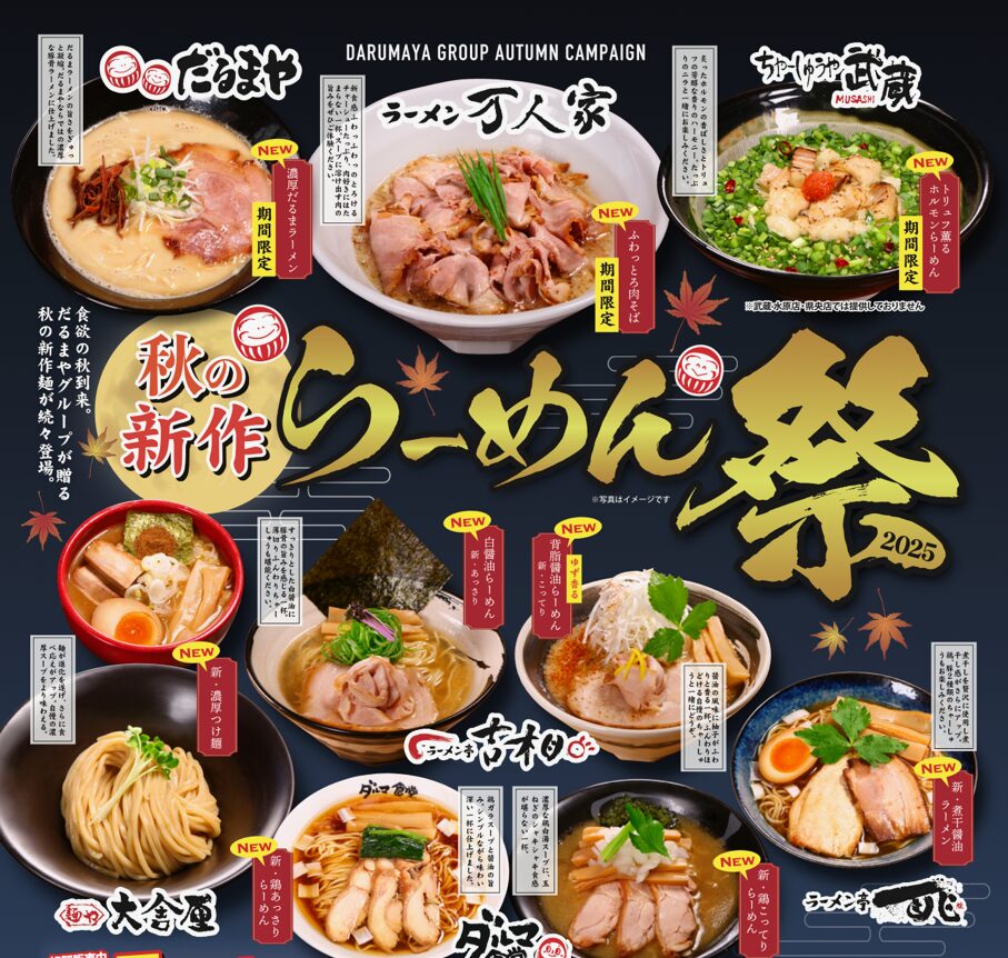 【新作ラーメンがドーン!】だるまやグループ7ブランドで「秋の新作ラーメン祭り」開催中
