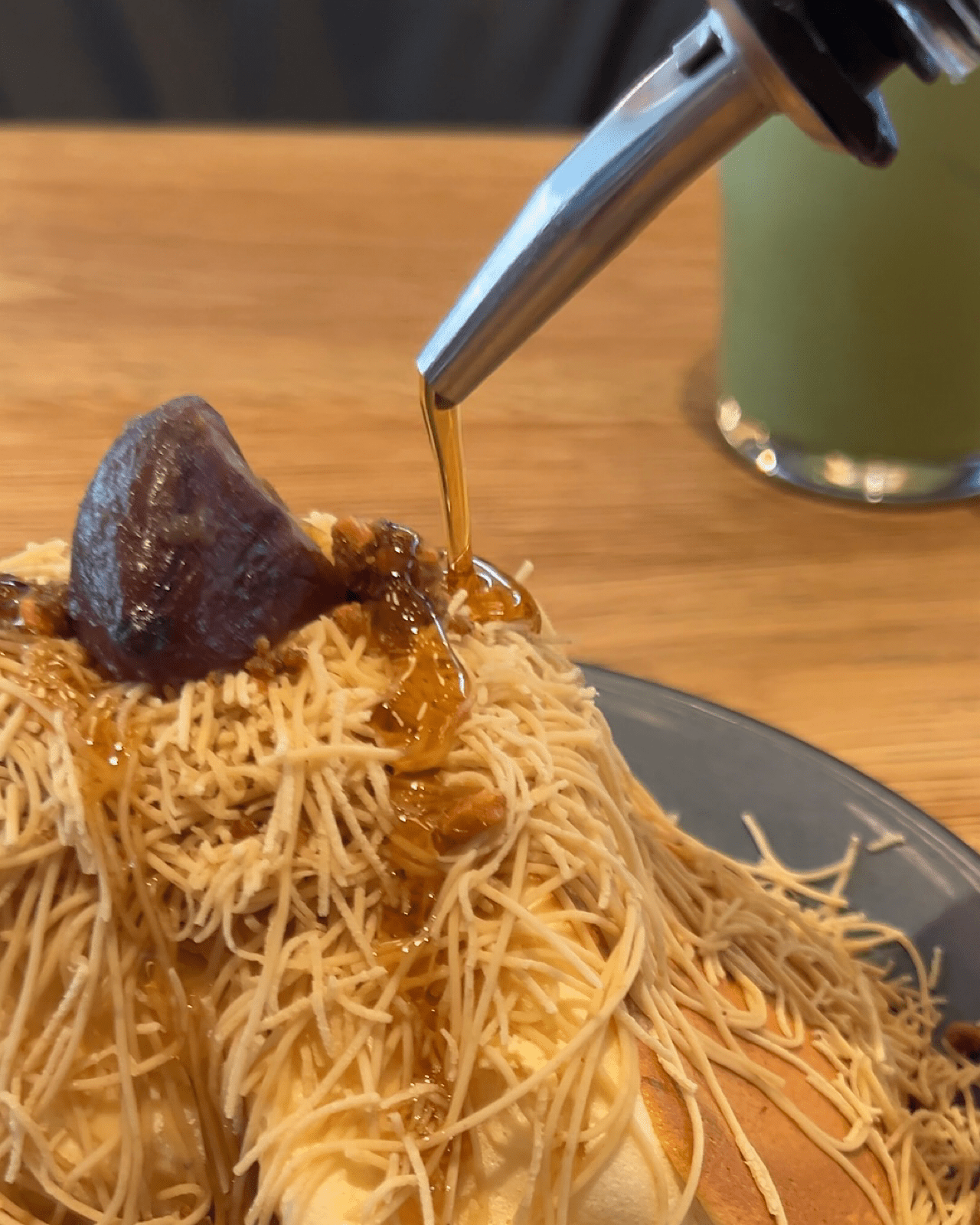 細い糸のようなクリームがさらーっと落ちていく様子はなんとも芸術的。“食欲の秋”と一緒に“芸術の秋”も楽しめるすばらしいメニューです。