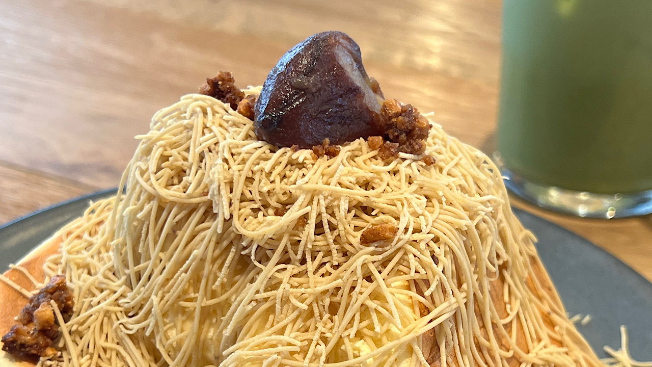 そんなモンブランを堪能できるパンケーキが富山市のカフェに登場しました。名古屋の有名店とコラボしたこの秋限定の味。