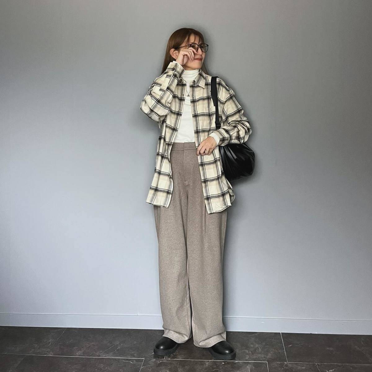 【12月】垢抜けるタートルネックコーデ②チェック柄のシャツを羽織る♪