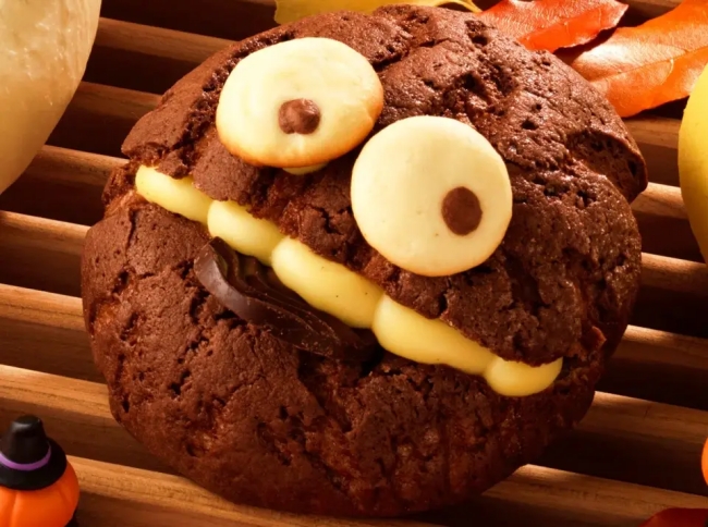 『モンスターチョコメロンパン』は、ハロウィンのモンスターをイメージしたメロンパン。ココアをブレンドした生地にカスタードクリームをサンドし、クッキー生地やピュアチョコレートでモンスターの顔が表現されています。
