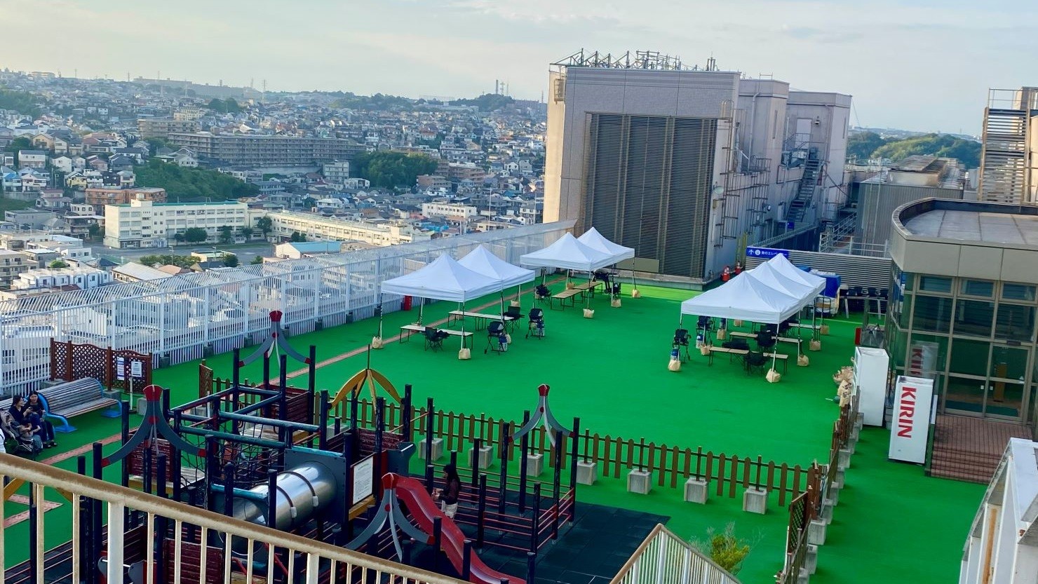 12階にはフットサルコートがあり、地元のサッカークラブ「横浜F.マリノス」のスクールやフットサル大会などが開催されています。上大岡の街を一望できる屋上では、飲み物を片手にのんびりとした時間を過ごせます。