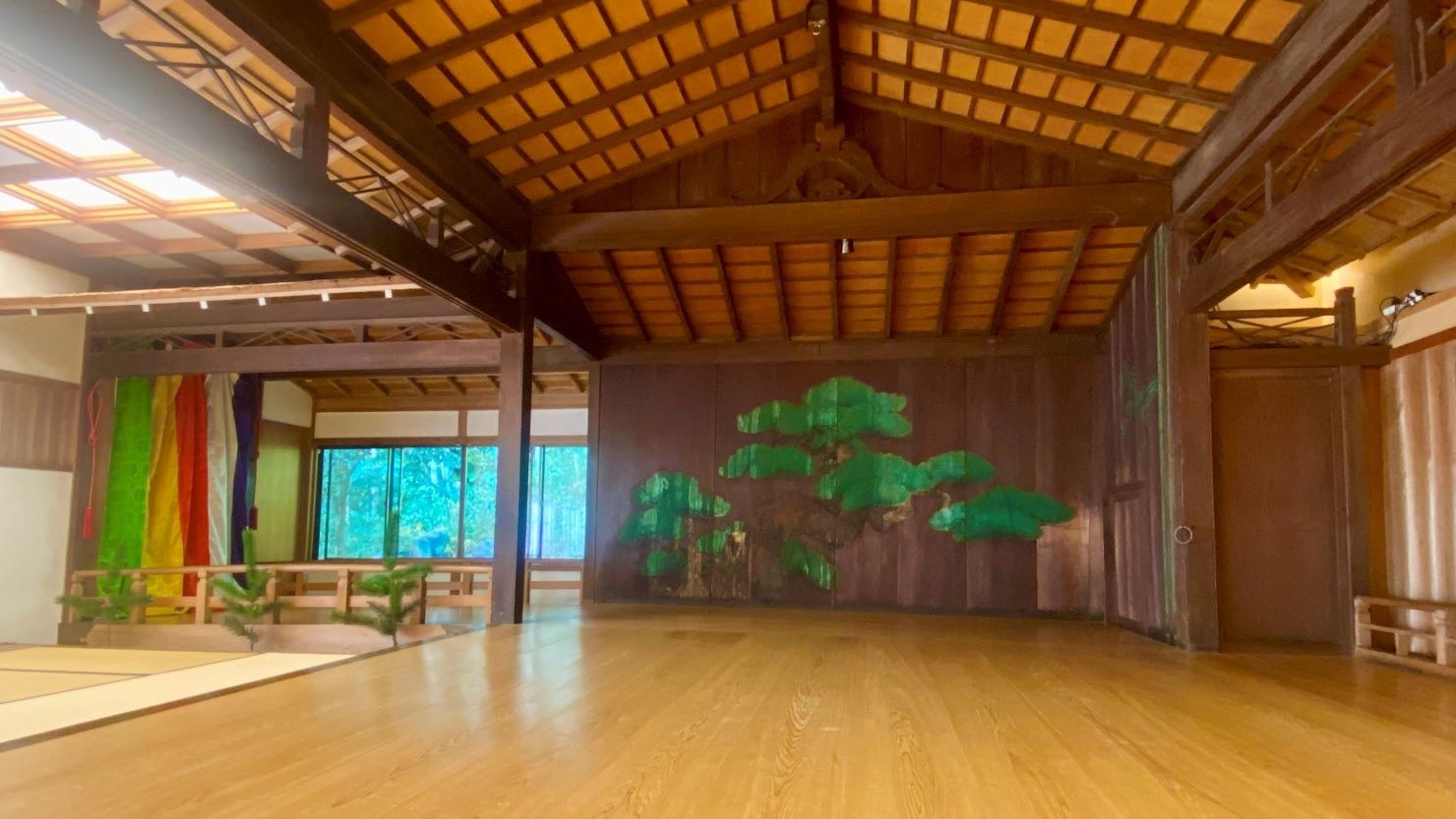 茶室や和室のある日本家屋の中に、久良岐能舞台があります。大正時代から昭和にかけて数多の人間国宝を育んだ能舞台。鏡板と呼ばれる舞台の正面に描かれた老松の威厳に圧倒されます。