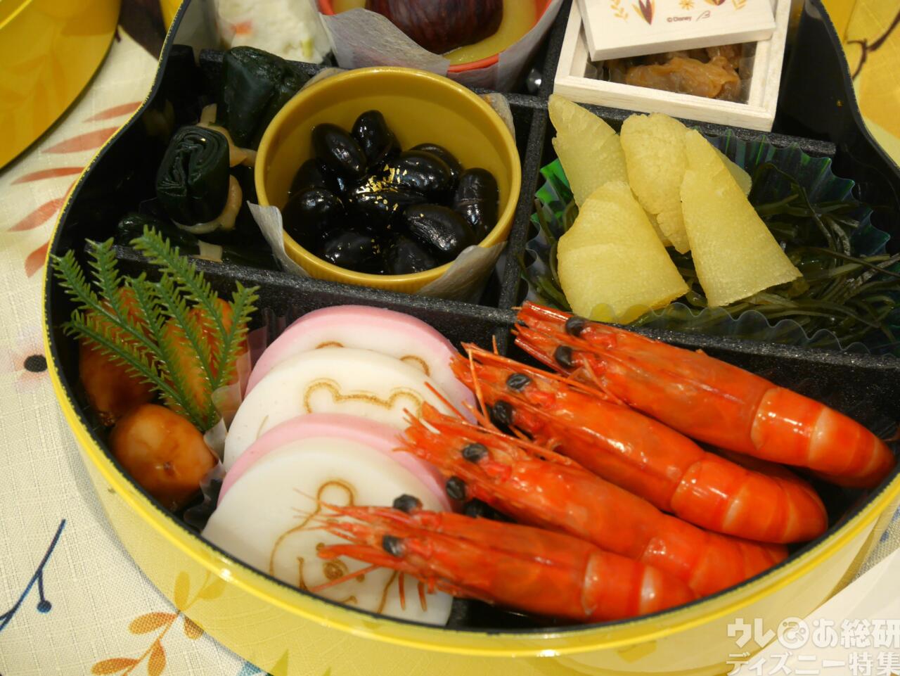 森の木の実のような見た目も可愛い栗きんとんや、プーさんの焼き印が入った可愛いかまぼこなど、キャラクターの可愛さや世界観もたっぷり表現されています。