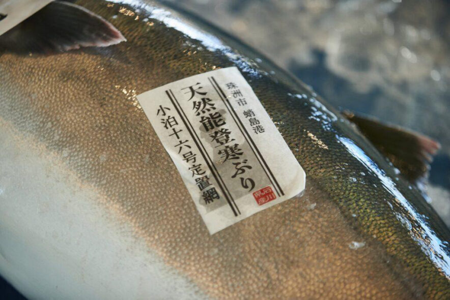 さらに、2023年からは天然能登ぶりの証明として、定置網名や水揚げ港が記された「白縁(シロブチ)」のラベルが付けられています。これは天然能登ぶりの基準である「7キロ以上」であることを示す証として作られたようです。