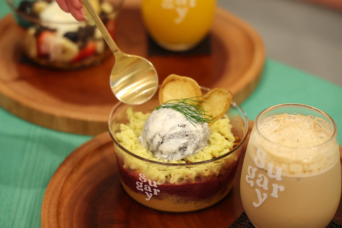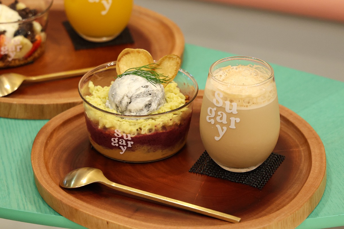 そこに黒胡麻のグリークヨーグルトが加わることで、香ばしさとコクが一気に深まり、味わいに奥行きをプラス。まさに“秋の空気に寄り添う”ような優しい甘さです。