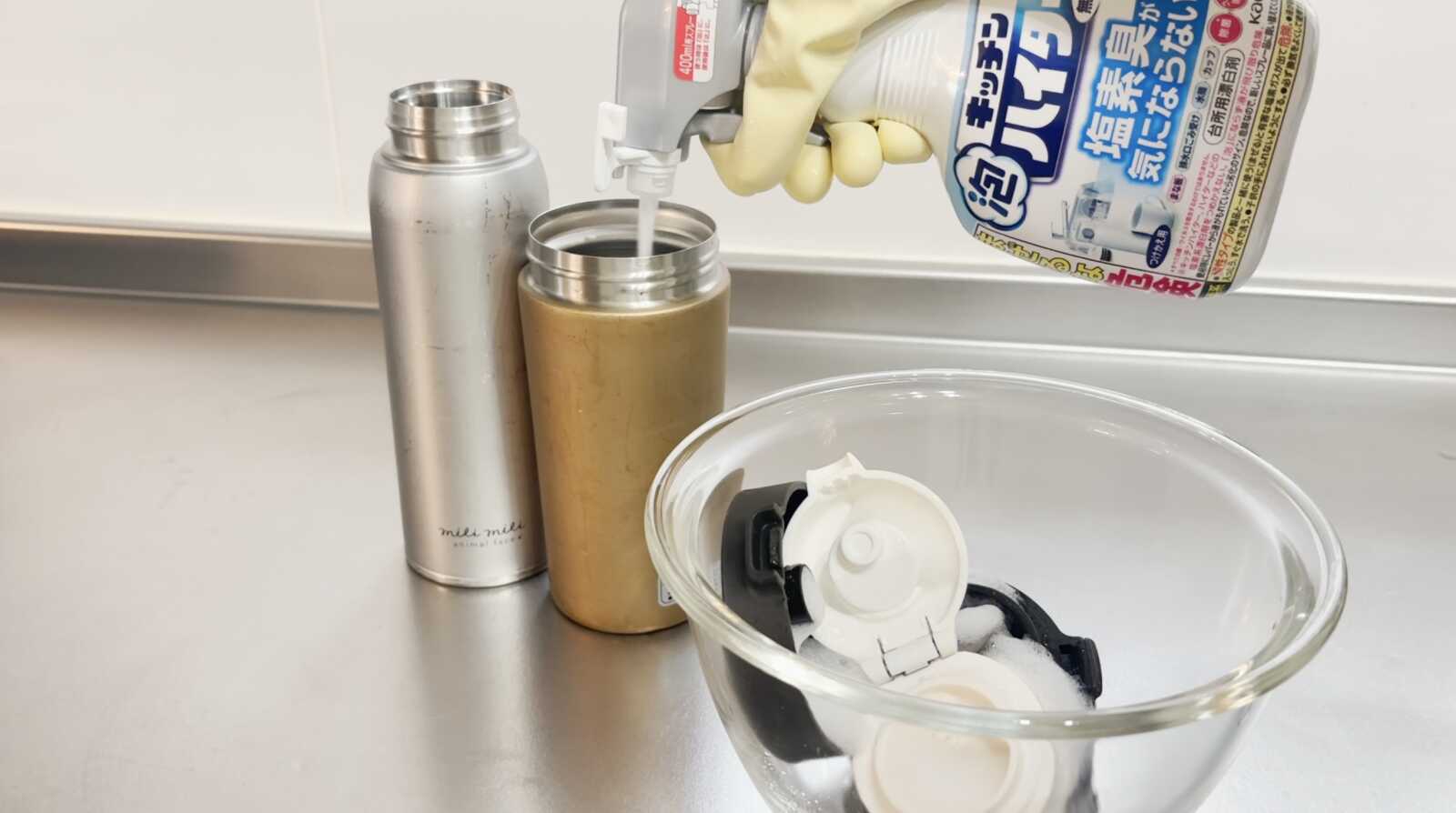 家族が毎日使う水筒は、口に触れる部分が清潔か心配です。そんなときに頼れるのが「無臭性タイプ」のキッチン泡ハイターです。