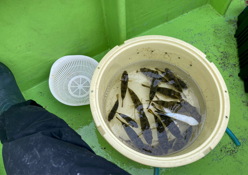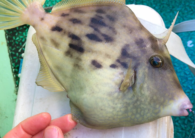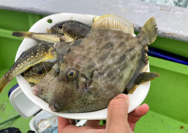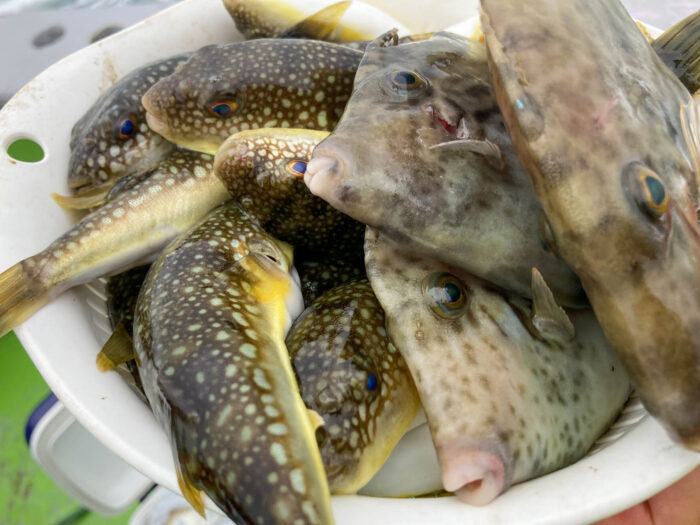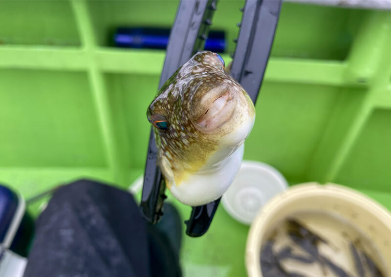 ゲストのフグは、その鋭い歯で仕掛を切ってしまう厄介な魚…