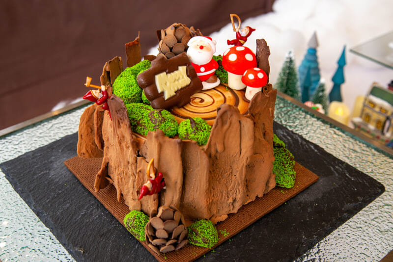 最後にご紹介するのは、今回のクリスマスケーキの中でも特にスペシャルな「ブッシュドノエル」です。まるで森に佇む切り株のような趣があり、見た目からもう、絵本から飛び出してきたかのような可愛らしさとワクワク感があります。