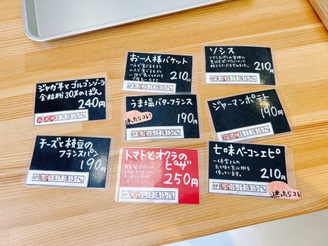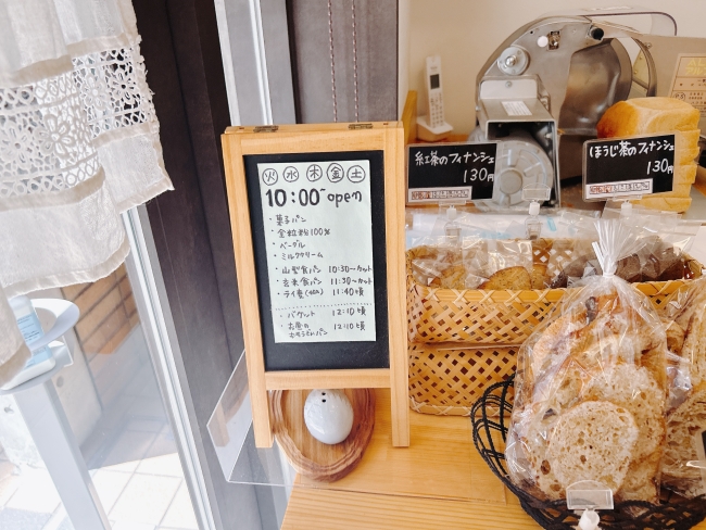 店内にはパンの焼き上がり時間の案内もあり、ランチにぴったりなお惣菜パンは12:10頃に並ぶそうですよ。人気店なので、お目当てのパンがある方は焼き上がり時間に合わせて訪れたり、電話で予約したりするのがおすすめです。