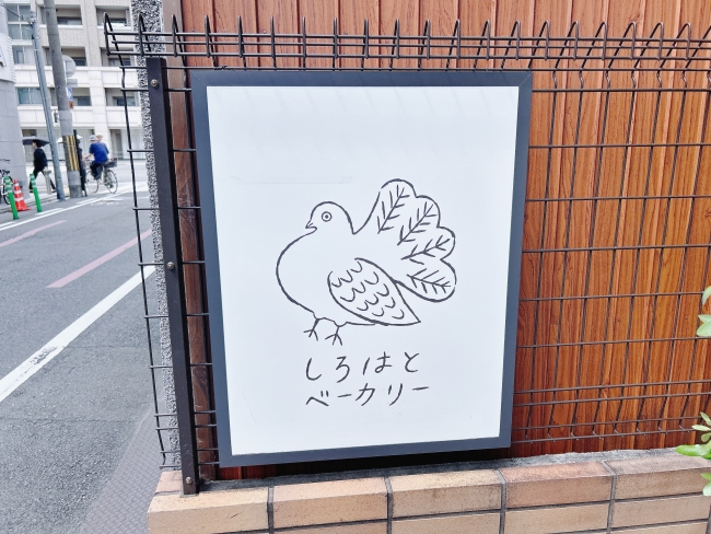 地下鉄・烏丸御池駅から徒歩約2分、オフィスビルが立ち並ぶ一角に、かわいらしい白い鳩の看板が見えてきます。こちらが、今回ご紹介する『しろはとベーカリー』です。