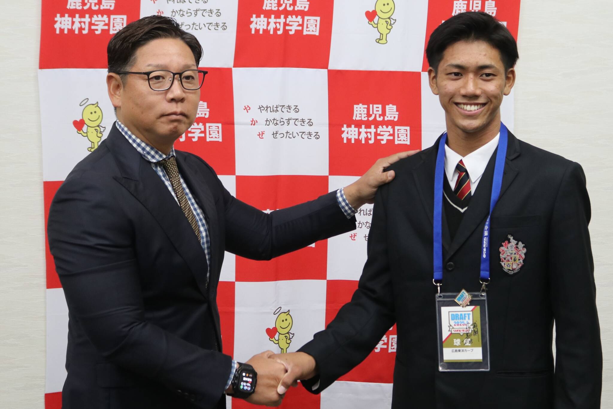 日本野球機構(NPB)・広島東洋カープの球団関係者が11月4日、ドラフト会議で6位指名した西川篤夢内野手(17)の在籍する神村学園高等部伊賀(三重県伊賀市北山)を訪れ、指名のあいさつを行った。あいさつ後の会見で、広島の松本有史・東海地区担当スカウトは「三拍子そろった、高校ナンバーワンの野手と思って指名した」と期待を寄せた。