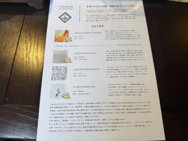 その日の紅茶についてのリーフレットも用意されており、背景を知ることでさらに味わい深く感じられます。お気に入りの品種を見つけるのも楽しみのひとつ