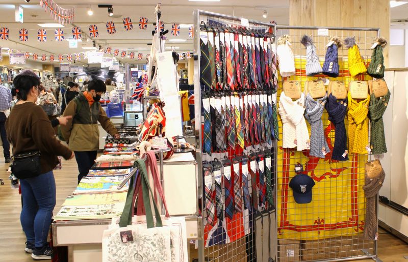 三重県四日市市の近鉄百貨店四日市店で11月22日、「英国展」が始まった。5回目となる今年は初めて秋開催となり、温かい紅茶や伝統のお菓子スコーンを会場内のテーブルで楽しむこともできる。雑貨や衣類のほか、最高160万円余の金貨のセットなどの貴重な品もある。5階催会場で、30日まで。