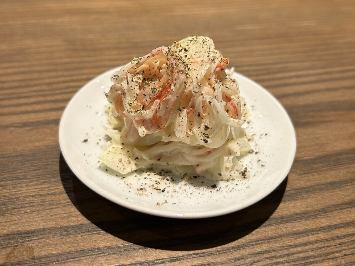 「ペッパー特製カニカマサラダ」は、ほんのりとからしの風味が効き、トッピングのブラックペッパーが程よいアクセントになっています。