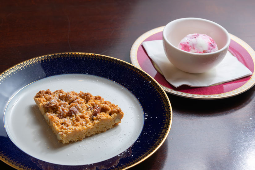 とうもろこしとアーモンドの焼き菓子「スブリゾローナ」とイタリア産のジェラート。
