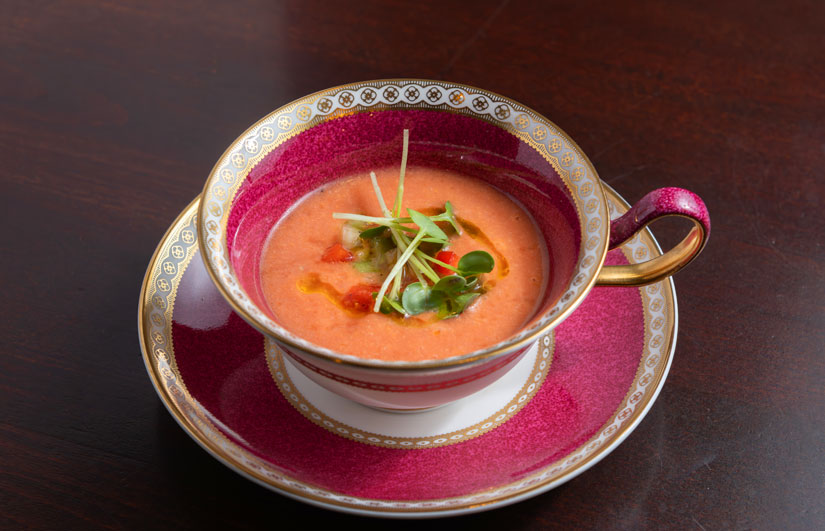 ※画像はセロリ、パプリカ、キュウリをベースとした野菜をふんだんに使った冷製スープ。