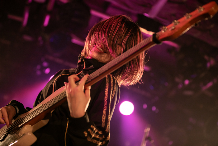 「やりたくもない仕事をしたり、頑張って学校に行ったり、トイレで泣いたり、そういうことして来てくれる子たちがいると思ってるんです。つらいという感情はどうしようもできないから、毎回ステージに立つ度にどうしようもできない悔しさがある。せめて与えられた時間でうちらができるのは、めちゃくちゃいい音楽をやって、歌って帰ることだと思ってます。今日もそれをしに来ました」――観客にまっすぐ語りかけていたににちゃん。「自分が絶望の淵に立たされた時に作った歌を聴いてください」という言葉を添えた「微熱」は、瑞々しいメロディがいつしか熱を帯びていた。「世界の終わりみたいな夜を過ごしてるじゃない? そんな夜に、この記憶が何回だってそばにいられますように、ありたっけのラブソングを」と言って歌い始めた「ワールドエンド」もサウンドは力強いが、歌詞に刻まれている心情は切ない。「ねー、ダーリン」「ミッドナイトセブンス」「WANT YOU」も連発されて、つきみのライブはエンディングを迎えた。深くお辞儀したメンバーたちを包んだ拍手。フロアにいる1人1人の心に寄り添う姿勢が伝わってくるステージだった。
