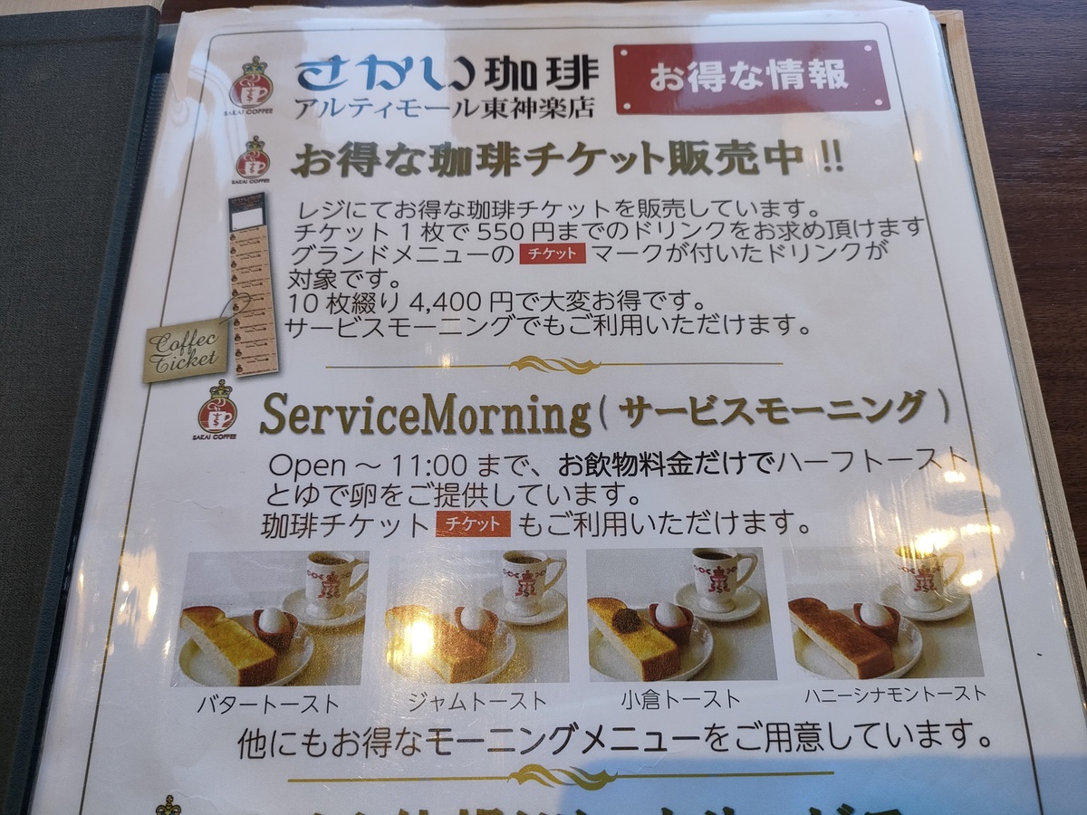 10枚綴りで4400円。モーニングサービスでも利用可能ですので、これはホントにお得なチケットではないでしょうか。