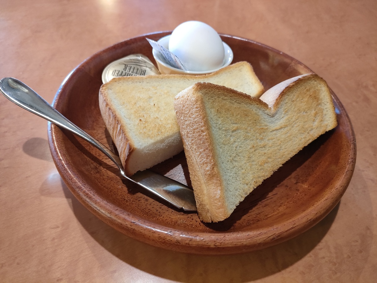 今回は一番シンプルな「厚切りトーストゆで卵」(480円税込)のモーニングをオーダーしました。