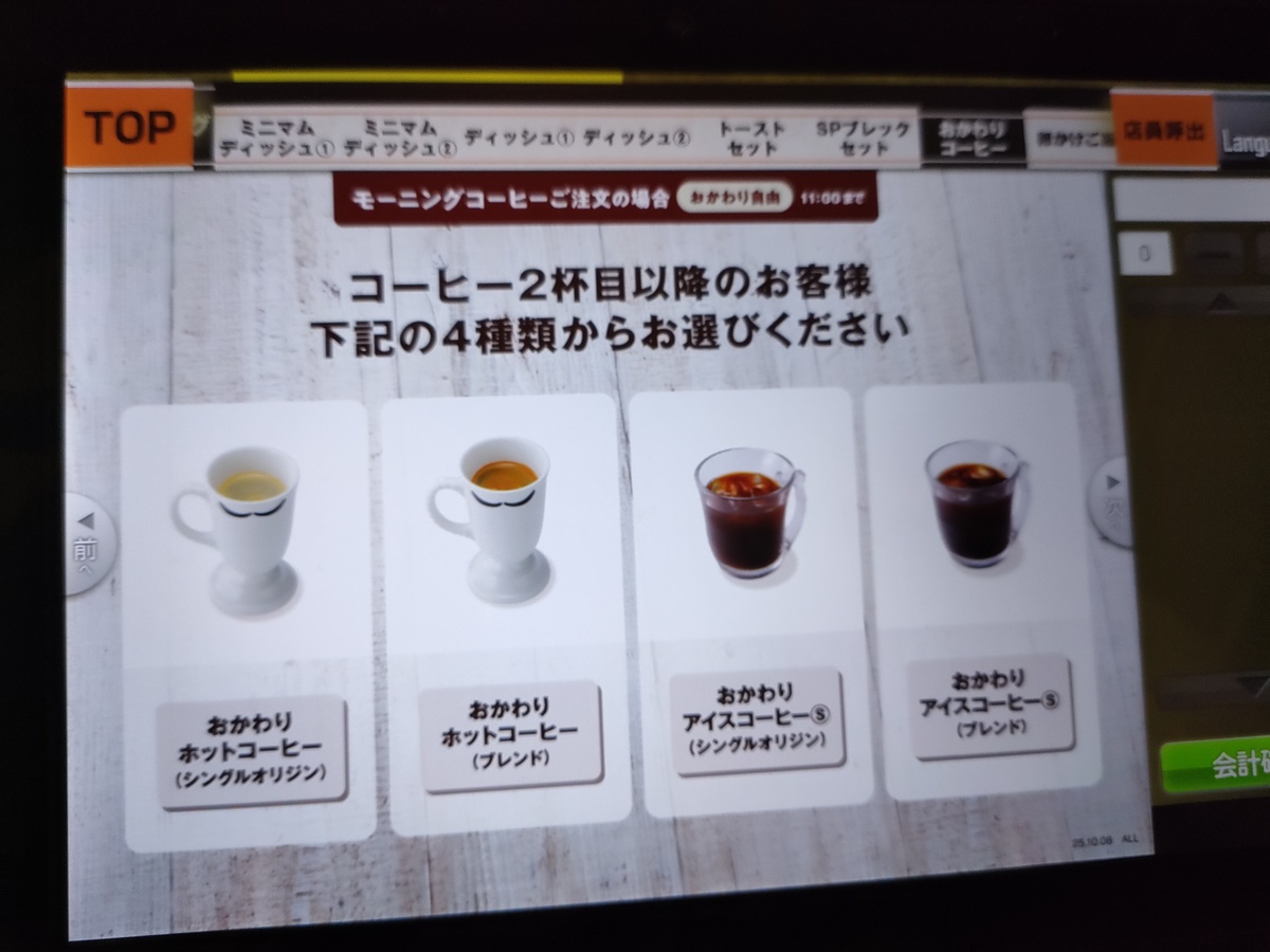 おかわりのコーヒーは写真の4種類から選ぶことができ、都度変更することも可能なんですよね。