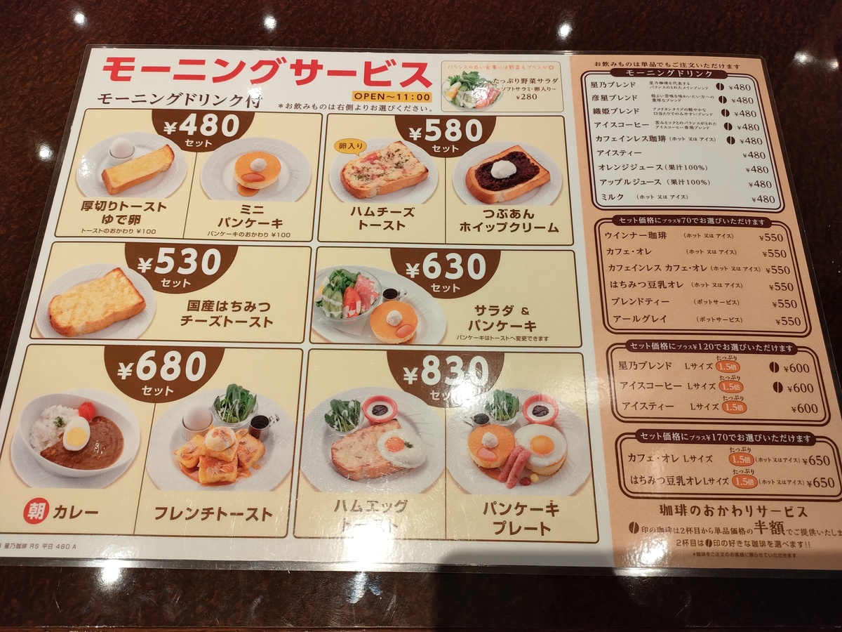 上の写真の通り、モーニングメニューはバリエーションも多く豊富なラインナップになっています。