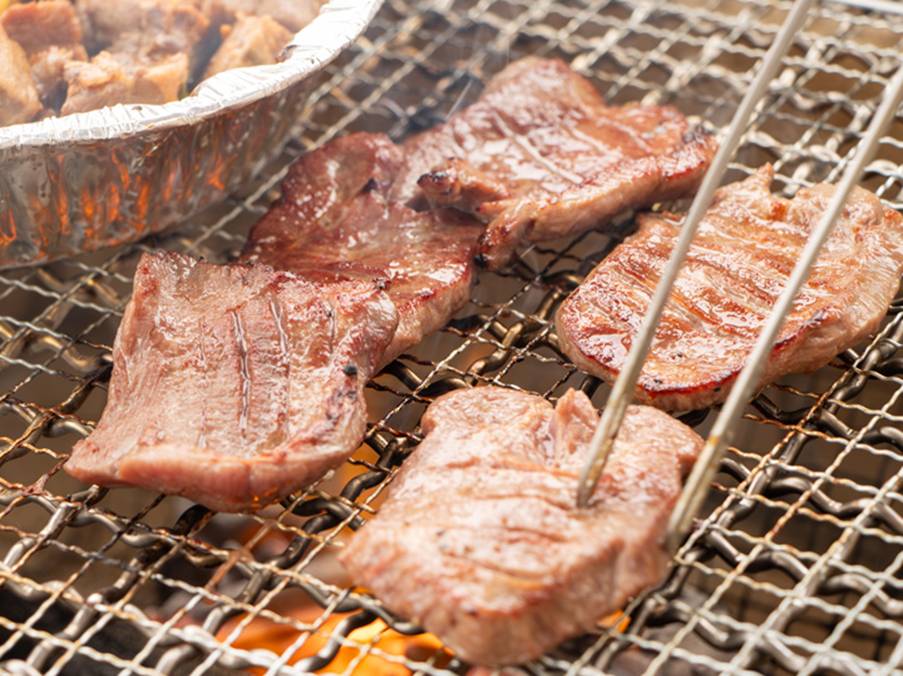 敷地内には炭火焼きスペースが設けられ、看板商品の牛タンをその場で味わうことが可能。