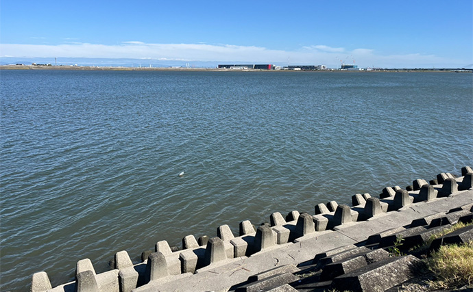想像以上の好釣果に気をよくして1週間後の10月15日、再び木曽川河口エリアにエントリー。天気は先週とは打って変わって曇り空、風向きも南からと少々投げづらい。