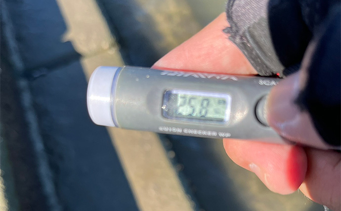 海の中はどうでしょう?水温を測れば25度とこちらもコチには適水温。過ごしやすい水加減、と言ったところでルアーマゴチのタックル準備にとりかかります。