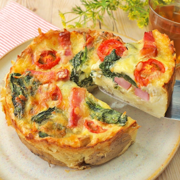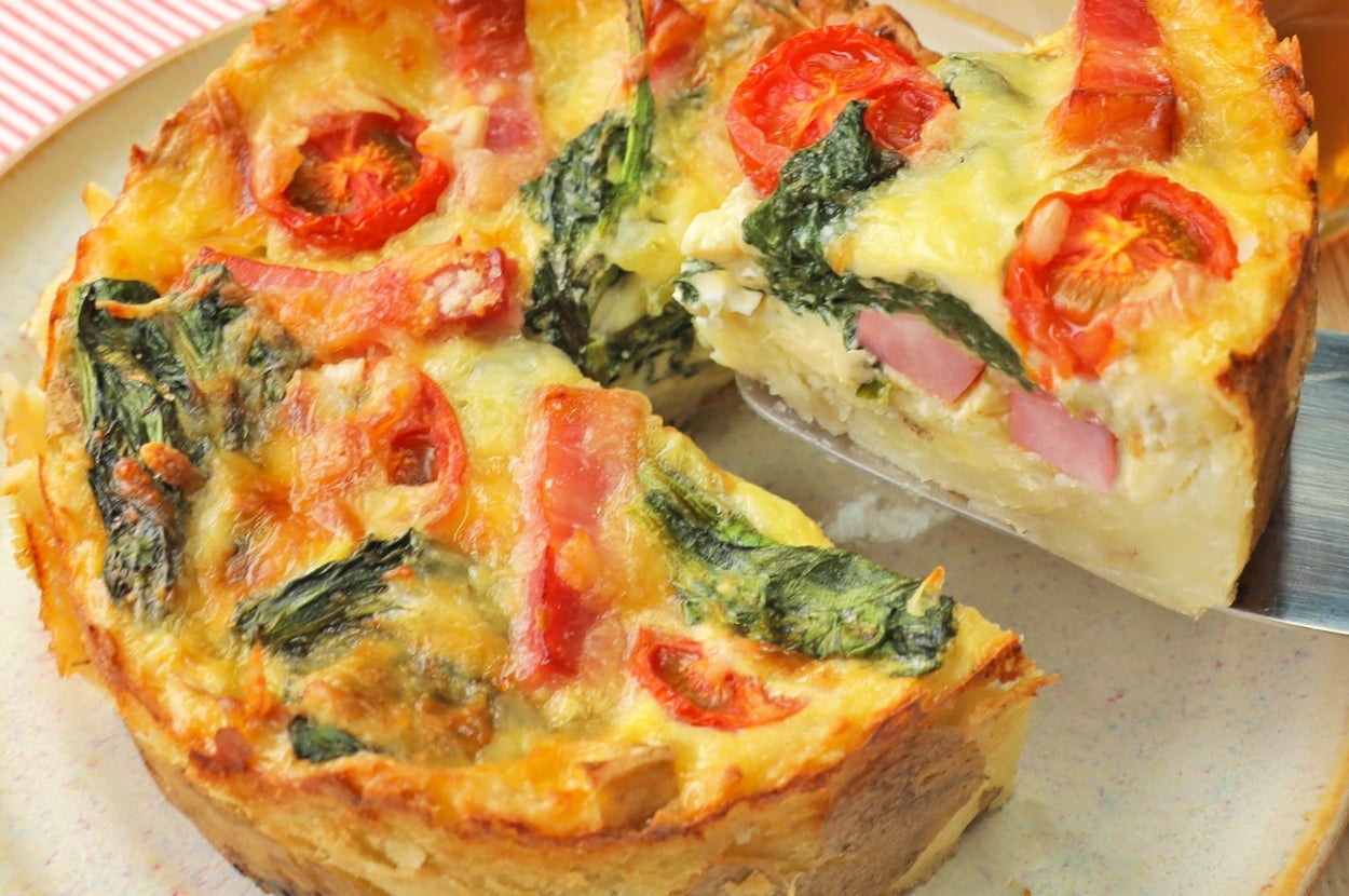 じゃがいも生地のほうれん草とベーコンのキッシュ