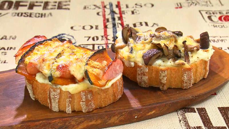 「秋食材のタルティーヌ (季節野菜・きのこ各350円)」は自慢の秋の一品。