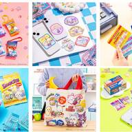 ちいかわとシナモロール、ハチワレとハローキティ、うさぎとポムポムプリン、モモンガとクロミ、シーサーとポチャッコ、古本屋とマイメロディのペアが、なかよくお買い物を楽しんでいます。
