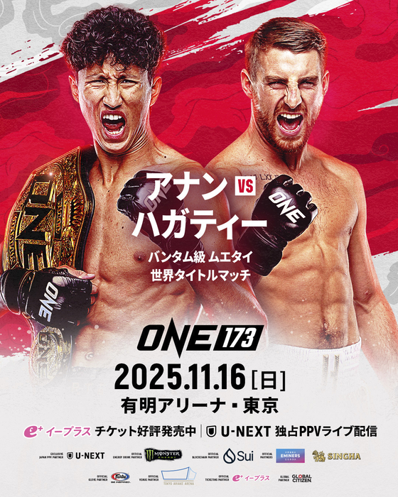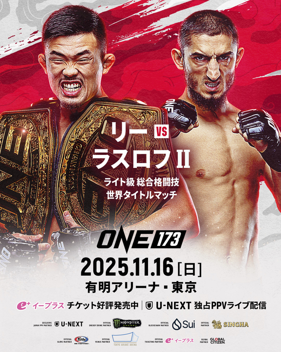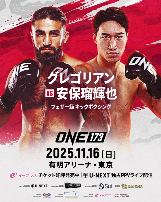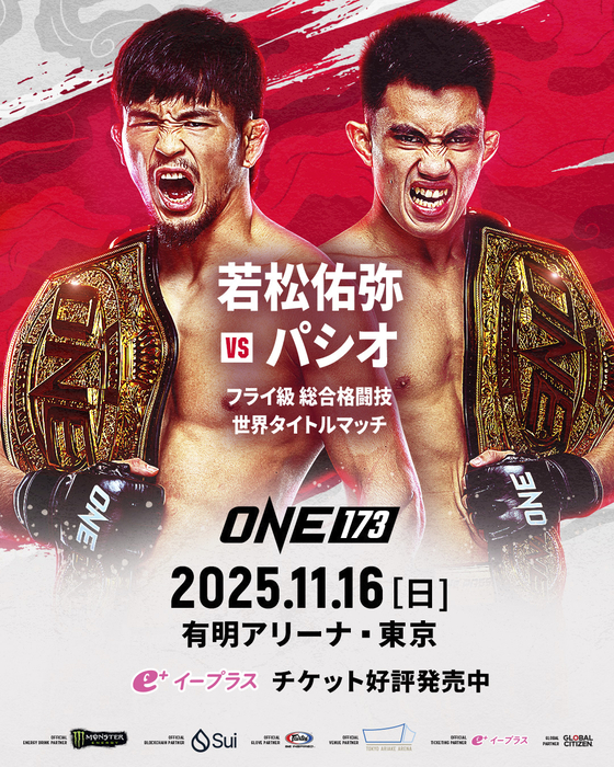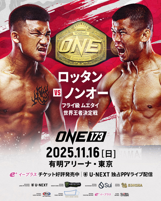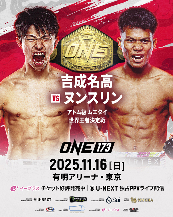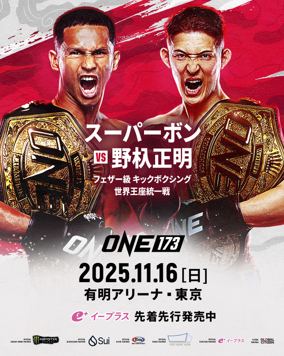 11月16日(日)に有明アリーナ(東京都)で開催される『ONE 173: スーパーボン VS 野杁』の全試合順が決まった。全部で16カードが組まれ、メインはフェザー級キックボクシング王座統一戦 スーパーボン vs 野杁正明戦と決まった。吉成名高のアトム級ムエタイ王座決定戦は第13試合で、初代王座をかけてヌンスリン・チョー・ケットウィナー(タイ)と対戦する。日本人による戴冠が大いに期待される。