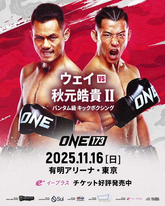 第1試合バンタム級キックボクシングの「ウェイ・ルイ vs 秋元皓貴」から見逃せない試合が並ぶ今回の『ONE173』。イープラスでは、新席種「CAT6」のチケットを10月25日(土)12:00より追加販売する。残り少ない良い席は、ぜひ早めに確保することをおすすめしたい。