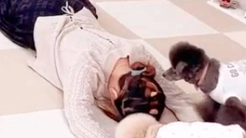 「通報されちゃうから落ち着いて…」と切に願いながら、パパさんにリードを渡すママさん。しかしプルミちゃんとバニーちゃんの興奮はおさまらず、その後もパパさんの周りで大暴れし続けたそうです。
