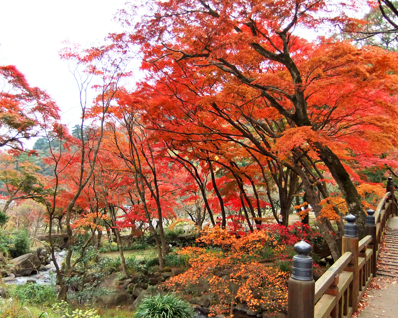 日本で最も早咲きの梅として有名な「熱海梅園」で紅葉も楽しめます。熱海は気候が温暖なため日本一遅く色づくと言われています。運が良ければ「日本一遅い紅葉」と「日本一早い梅」を同時に見られることもあるとか。