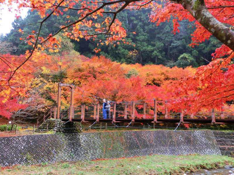 「もみじの里」周辺は吊橋、石畳の遊歩道、水車小屋、東屋などが整備され、絵になる1枚が撮れるスポットとして人気です。