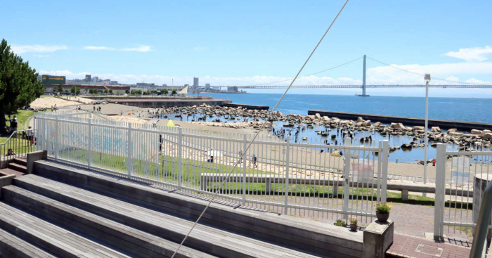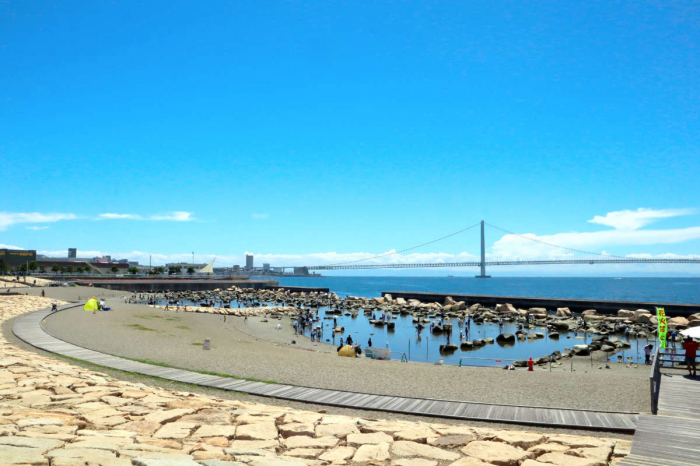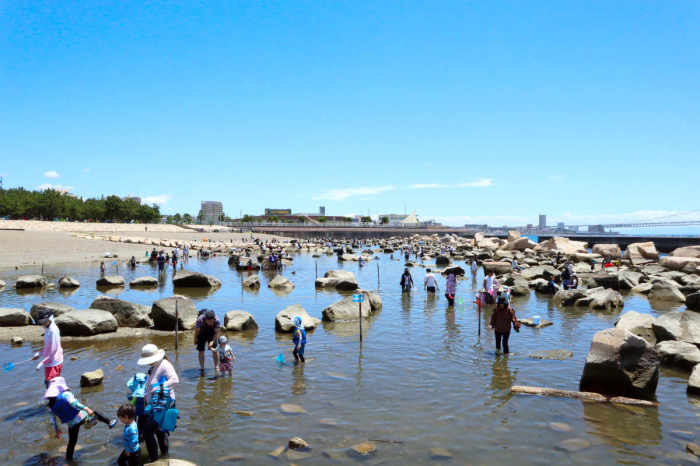 続いて向かったのは「自然観察ゾーン」。階段や通路が整備されており、砂浜ではなく小石が広がっているので靴に砂が入ってしまうということもありません。浅いところも多いので、小さな子どもでも楽しめます。