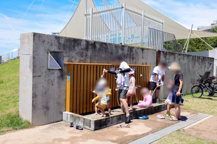 大蔵海岸(明石市)西側にある『自然観察センター』はマリンシューズやバケツ、ライフジャケットなどを無料貸出しているほか、涼しい中でほっと一休みできる“オアシス”空間♪