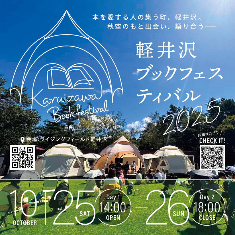 2025年10月25日(土)と10月26日(日)に、長野県北佐久郡軽井沢町の「ライジングフィールド軽井沢」で『軽井沢ブックフェスティバル2025』が開催。軽井沢の広大なキャンプ場を舞台に、本と人、人と人が出会い、語り合う新しいタイプのイベント。