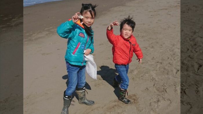 海岸で貝を集めているのは、上越市立直江津東中学校1年生の樋口さくらさんと、春日新田小学校5年生の弟・葵人さんです。