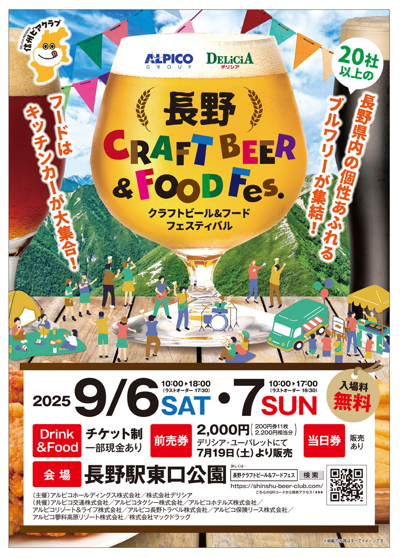 9/6(土)9/7(日)『長野CRAFT BEER & FOOD Fes(ながのクラフトビール&フードフェス)』地元&大手ブルワリー29社が集結!ビールにぴったりのグルメも堪能@長野県長野市