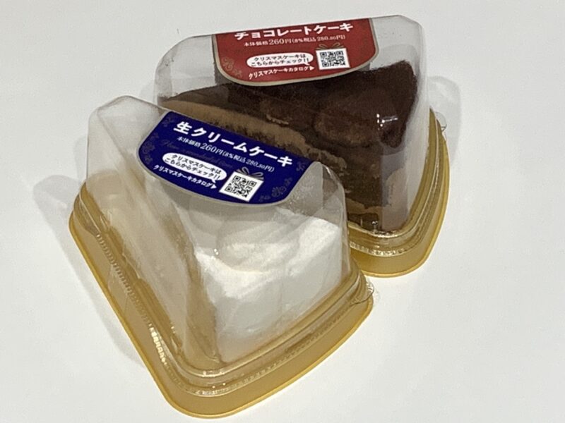 クリスマスケーキの生クリームケーキとチョコレートケーキのミニサイズが売っていたので、買ってみました。