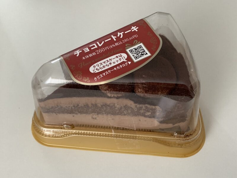 セコマのクリスマスケーキ(ミニサイズ)、生クリームもチョコレートもどちらも美味しかったです。