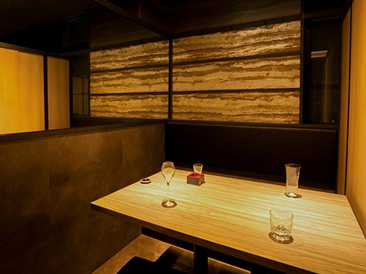 ビルの階段を上ってたどり着いた先にあるのは、大人の秘密基地と言いたくなる場所。店内は、木目調で統一され、落ち着きと温もりを感じる空間となっています。こだわりの料理でお腹を満たすのも、2軒目として軽く一杯という使い方もOK。カウンター席も用意されていて、一人でマイペースに過ごしたいというゲストも歓迎してくれます。