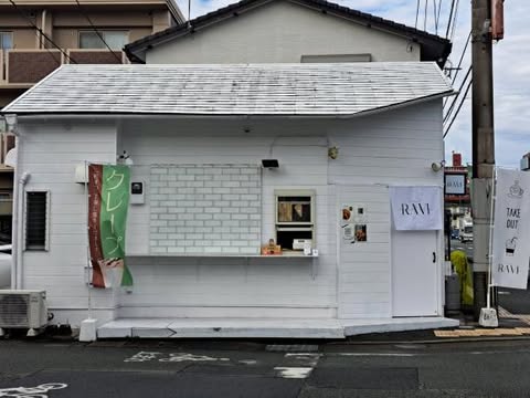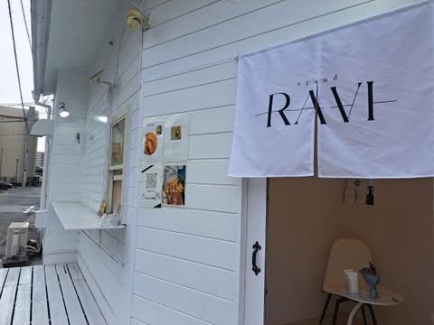 お店の場所は熊本市中央区九品寺。 真っ白な外観が特徴的なstand RAVI